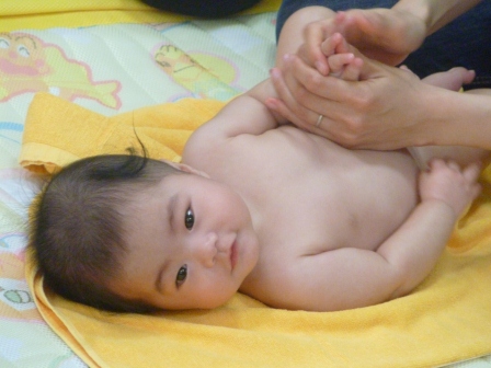 初めて参加の赤ちゃんも終始ニコニコと上機嫌な様子で、初めてのマッサージを受けていました♪